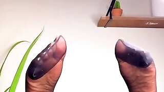 Sexy Japanese Black Pantyhose Foot Tease In Office