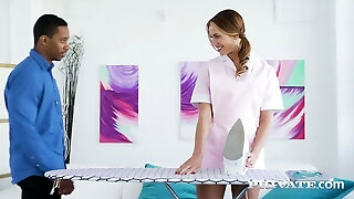 Quickie fucking between a white guy and fabulous ebony maid Sommer Isabella