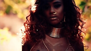 Wonderful ebony cowgirl with a pierced pussy loving a spicy interracial drill outdoors