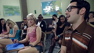 Voluptuous ebony woman is working as a teacher and often having casual fuck-fest with her college girls