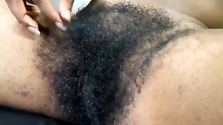 Two black guys take turns fucking fur covered pussy blonde slut li